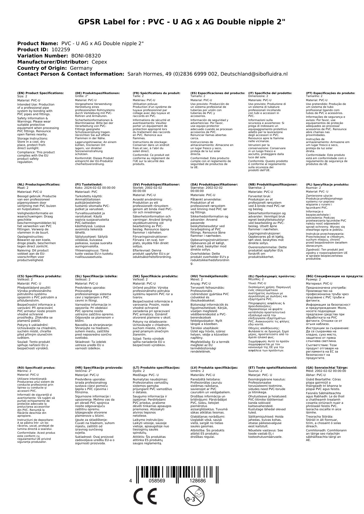 Stellen Sie eine Frage, um mehr über das Produkt zu erfahrenPVC-U AG x AG Doppelnippel 2 Zoll – Die perfekte Verbindung für Ihr Rohrsystem