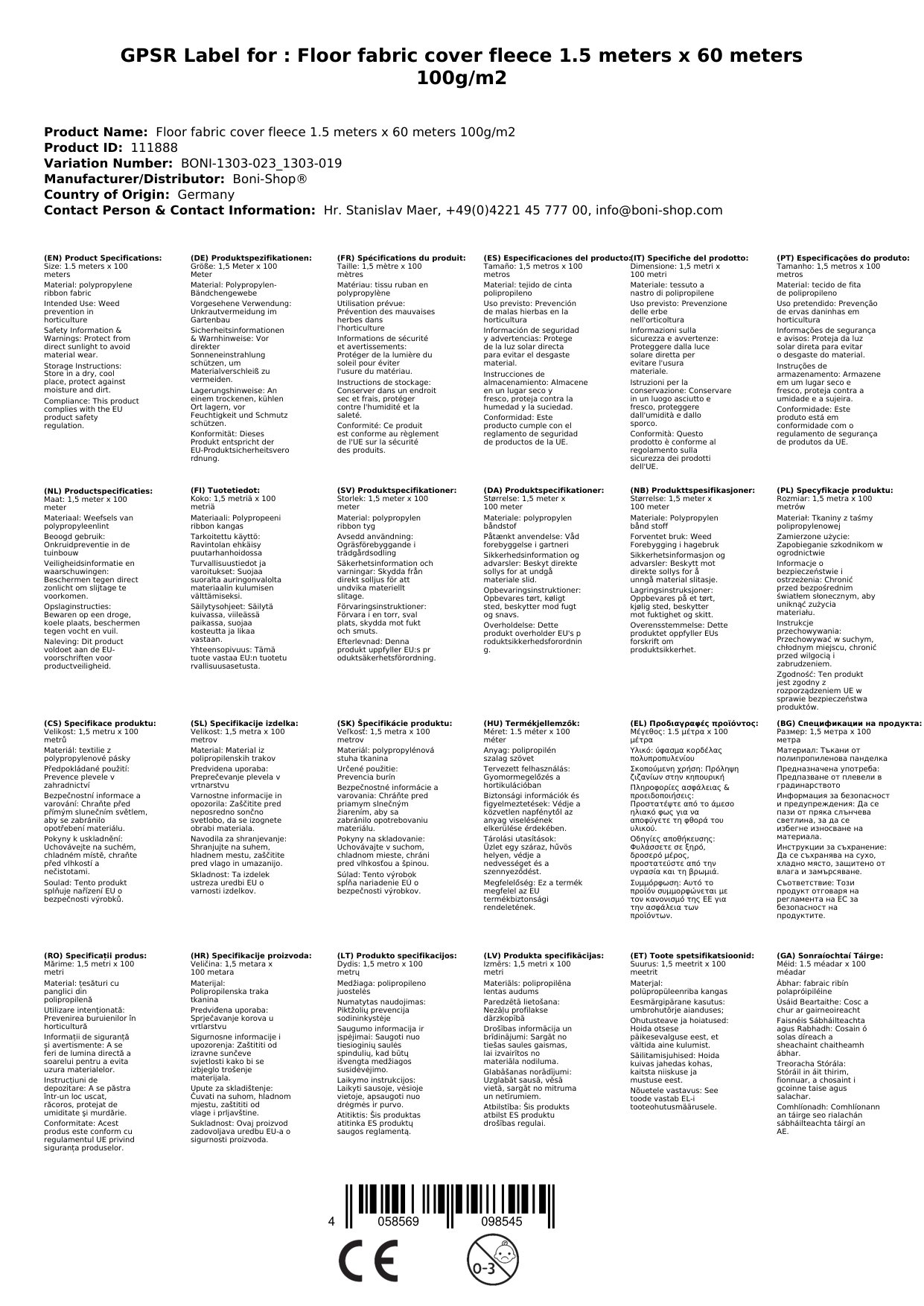 Bodengewebe 1,5m x 60m, 100g/m², Unkrautvlies, Gartenvlies