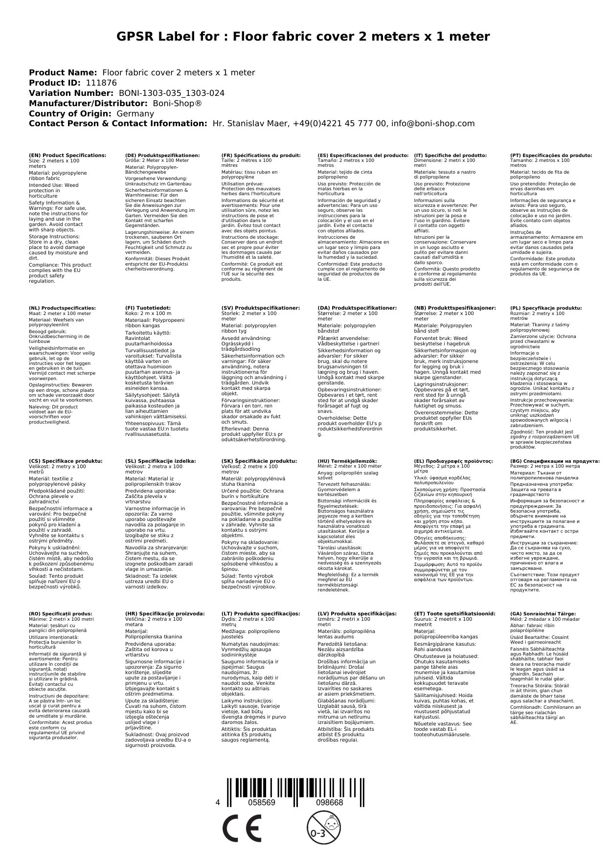 - Einfache Anwendung: Das Gewebe lässt sich leicht zuschneiden und verlegen. Markierungsstreifen erleichtern das Positionieren der Pflanzen.