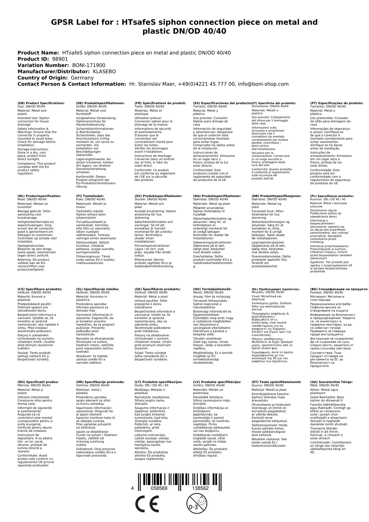 Stellen Sie eine Frage, um mehr über das Produkt zu erfahrenHTsafeS Siphonanschlussstück an Metall und Kunststoff DN/OD 40/40
