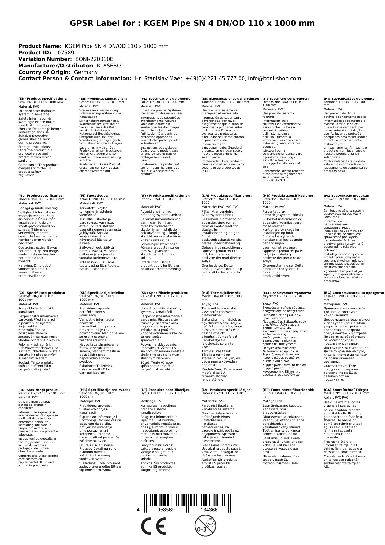 | Material | PVC-U (Polyvinylchlorid) |