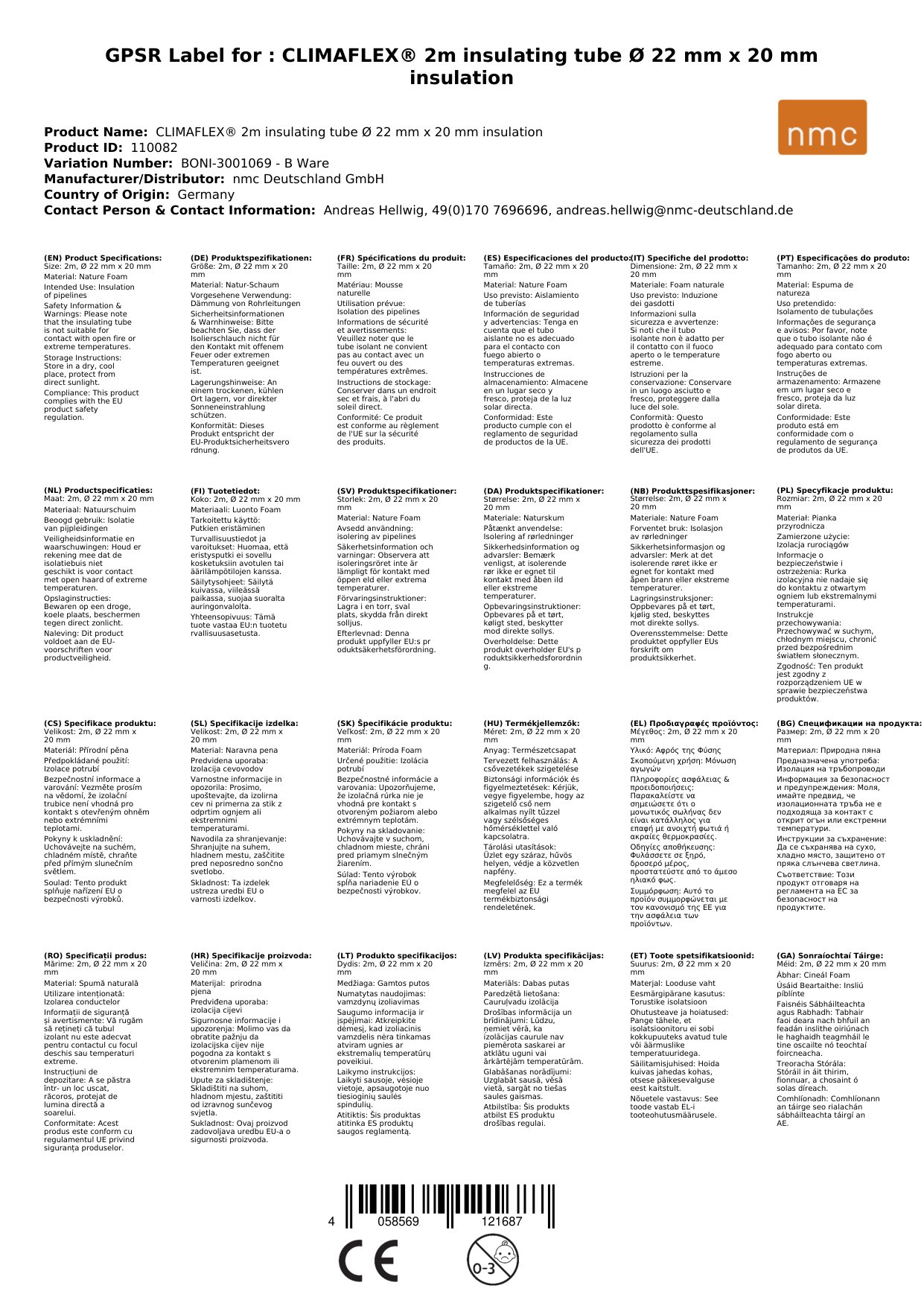 Stellen Sie eine Frage, um mehr über das Produkt zu erfahrenCLIMAFLEX® naturefoam 2m Isolierschlauch Ø 22 mm x 20 mm Dämmung