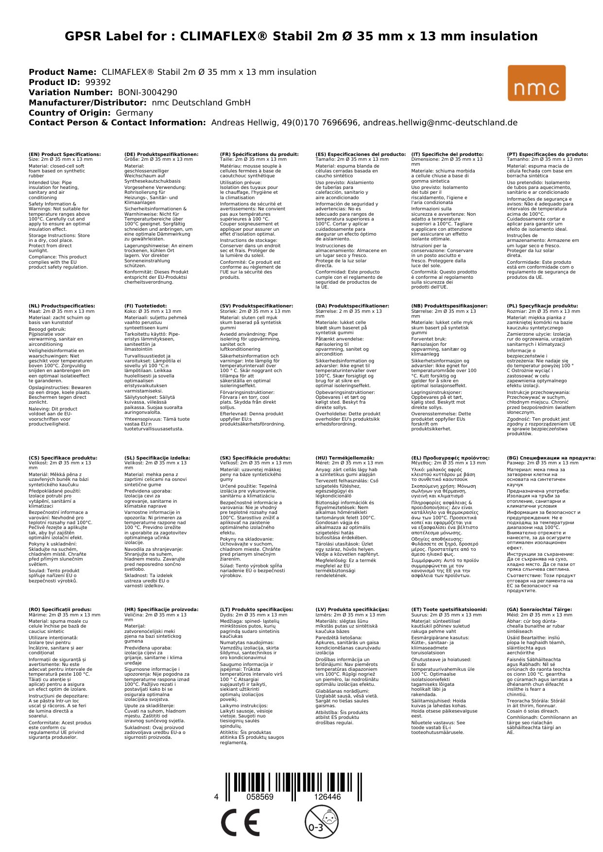 - Weichschaum auf Synthesekautschukbasis: Das Material sorgt für eine hervorragende Wärmedämmung und reduziert Wärmeverluste effektiv.