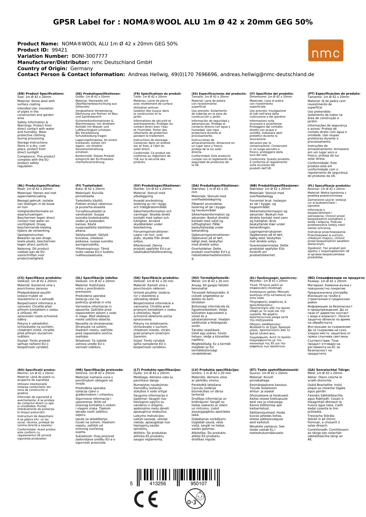 | Material | Steinwolle mit Aluminiumbeschichtung |