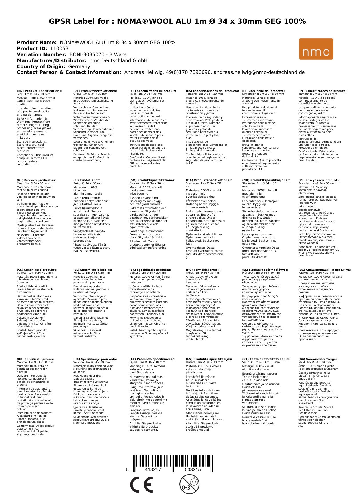 Stellen Sie eine Frage, um mehr über das Produkt zu erfahrenNOMA®WOOL ALU / CLIMATUBE® WOOL 1m Ø 34 x 30mm GEG 100%