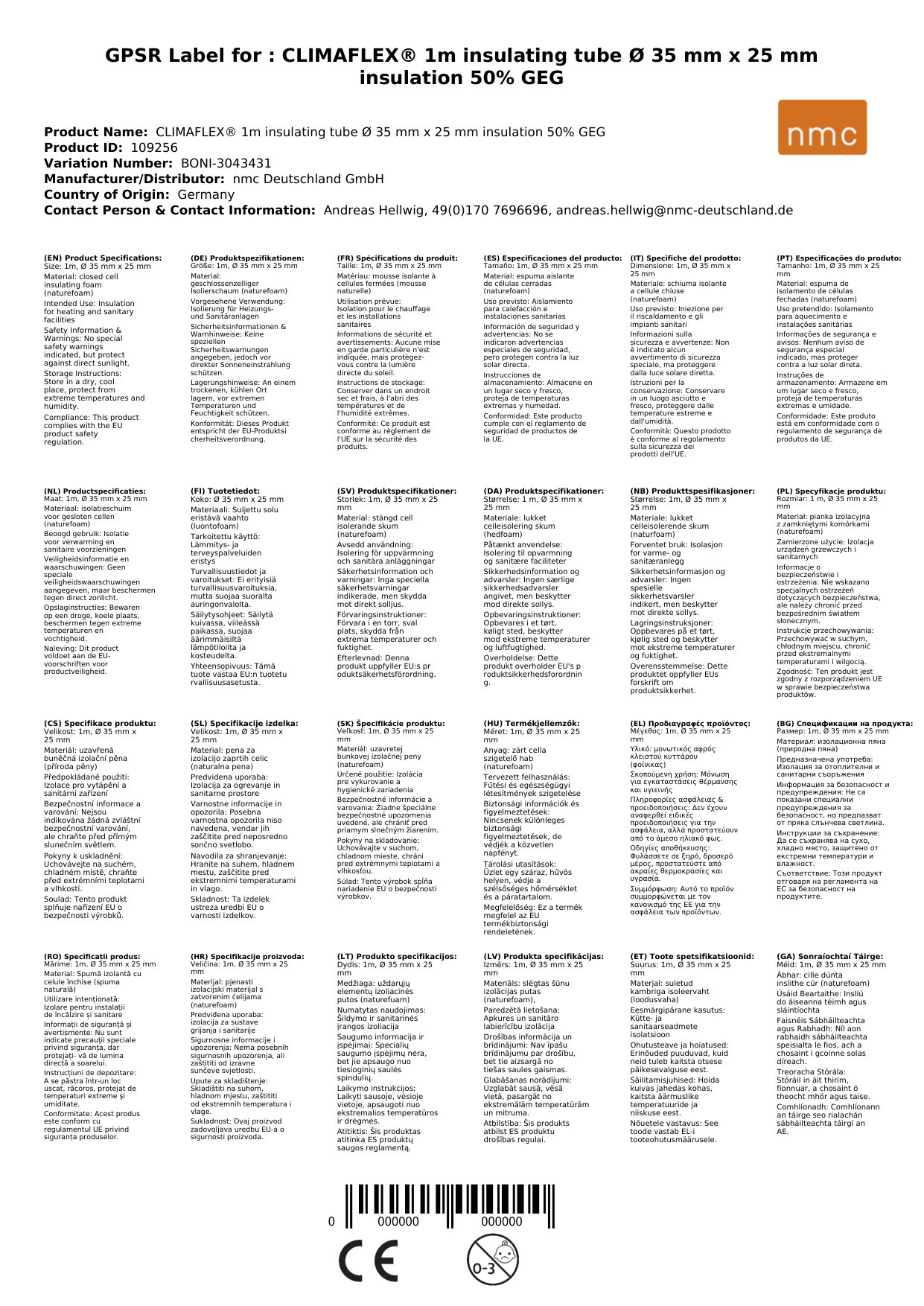 Stellen Sie eine Frage, um mehr über das Produkt zu erfahrenCLIMAFLEX® naturefoam 1m Isolierschlauch Ø 35 mm x 25 mm Dämmung 50% GEG