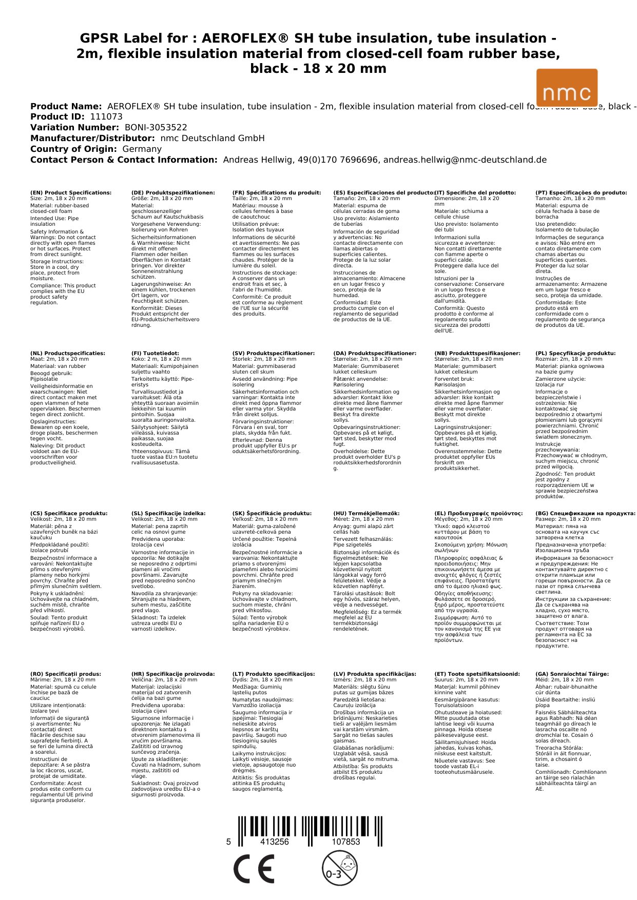 Stellen Sie eine Frage, um mehr über das Produkt zu erfahrenAEROFLEX® SH Rohrisolierung, Rohrdämmung - 2m, Flexibler Dämmstoff aus geschlossenzelligem Schaum Kautschukbasis, Schwarz