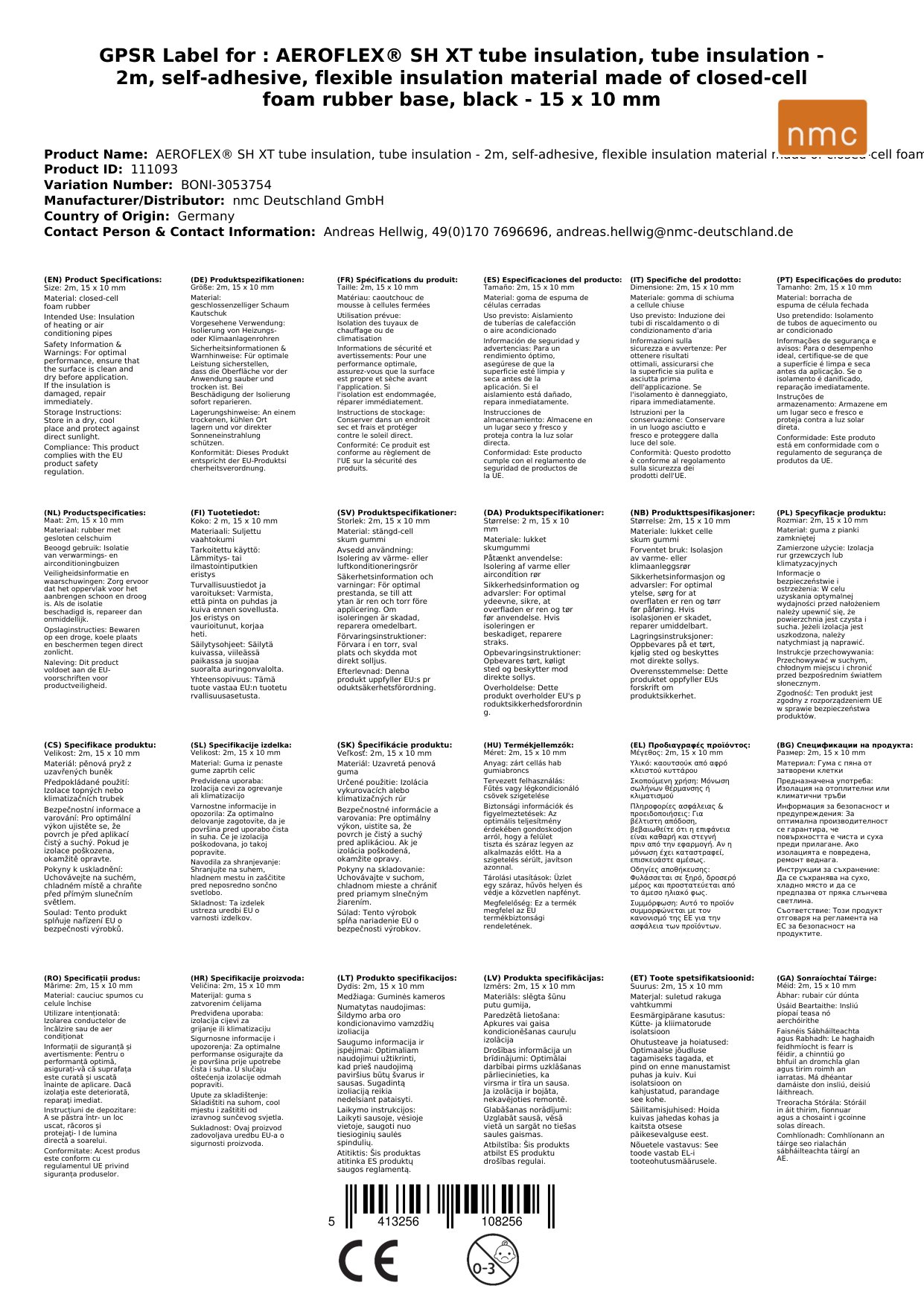 Stellen Sie eine Frage, um mehr über das Produkt zu erfahrenAEROFLEX® SH XT Rohrisolierung, Rohrdämmung - 2m, Selbstklebend, Flexibler Dämmstoff aus geschlossenzelligem Schaum Kautschukbasis, Schwarz