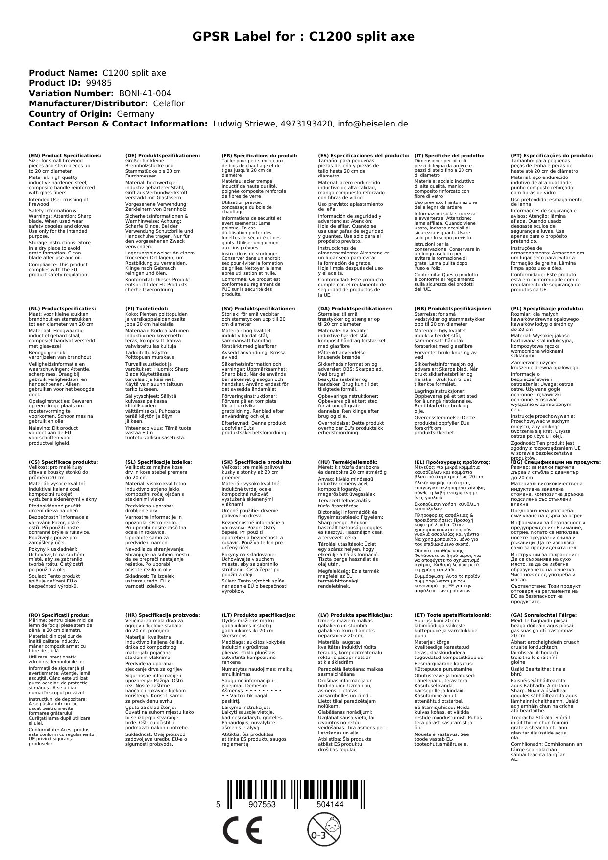 Spaltaxt C1200