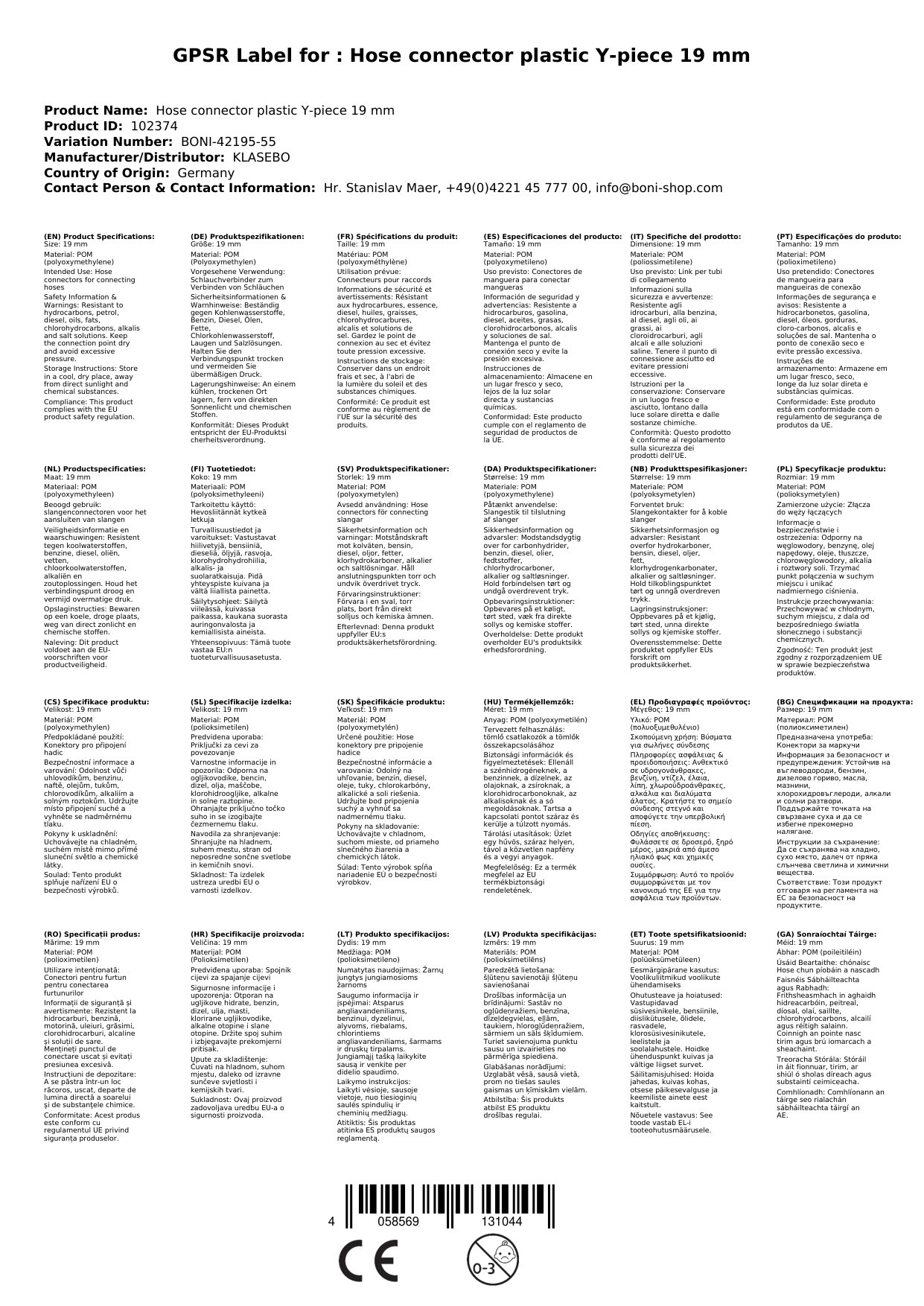 - Chemische Beständigkeit: POM ist beständig gegenüber vielen Chemikalien, sodass Sie den Verbinder vielseitig einsetzen können. Ihre Schläuche sind sicher verbunden, egal welche Flüssigkeiten Sie transportieren.