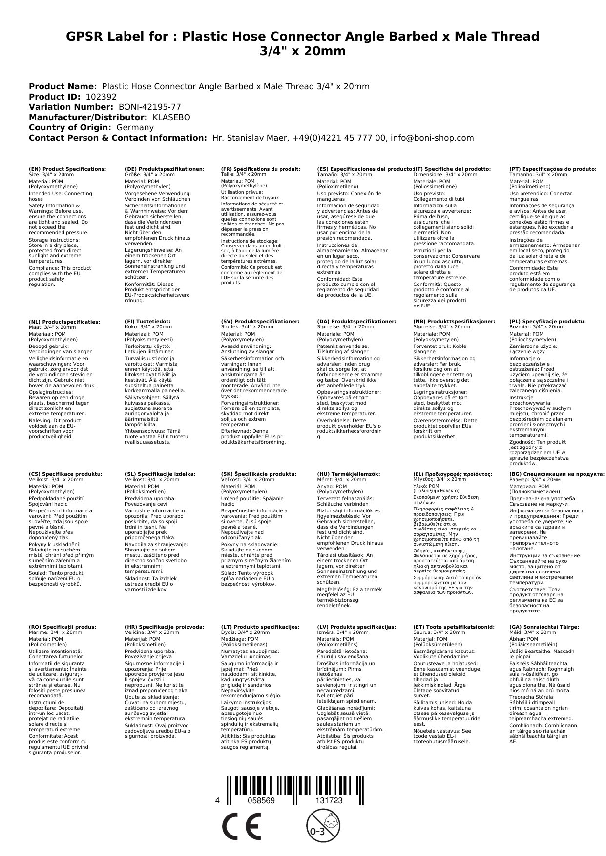 Stellen Sie eine Frage, um mehr über das Produkt zu erfahrenSchlauchverbinder Kunststoff Winkel Tülle x AG 3/4" x 20 mm