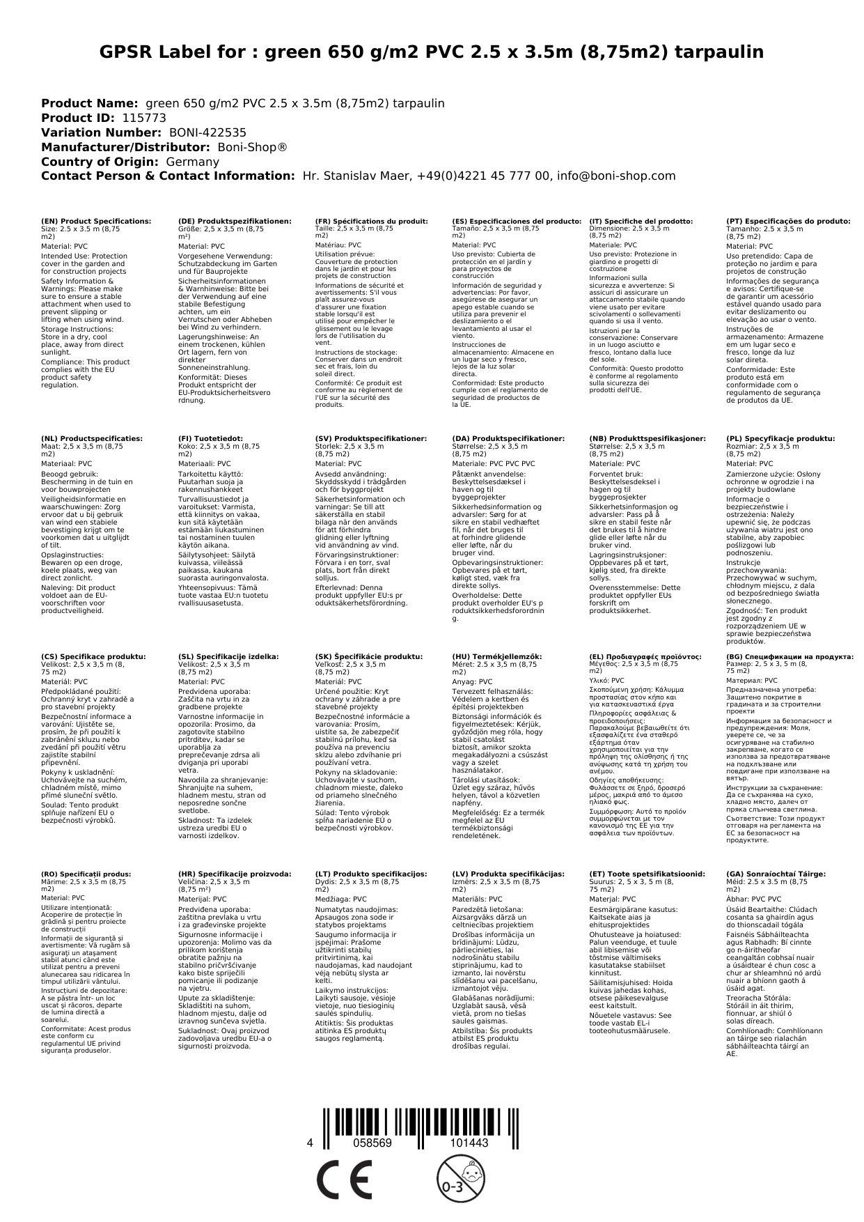 grün 650 g/m² PVC 2,5 x 3,5m (8,75m²) Plane