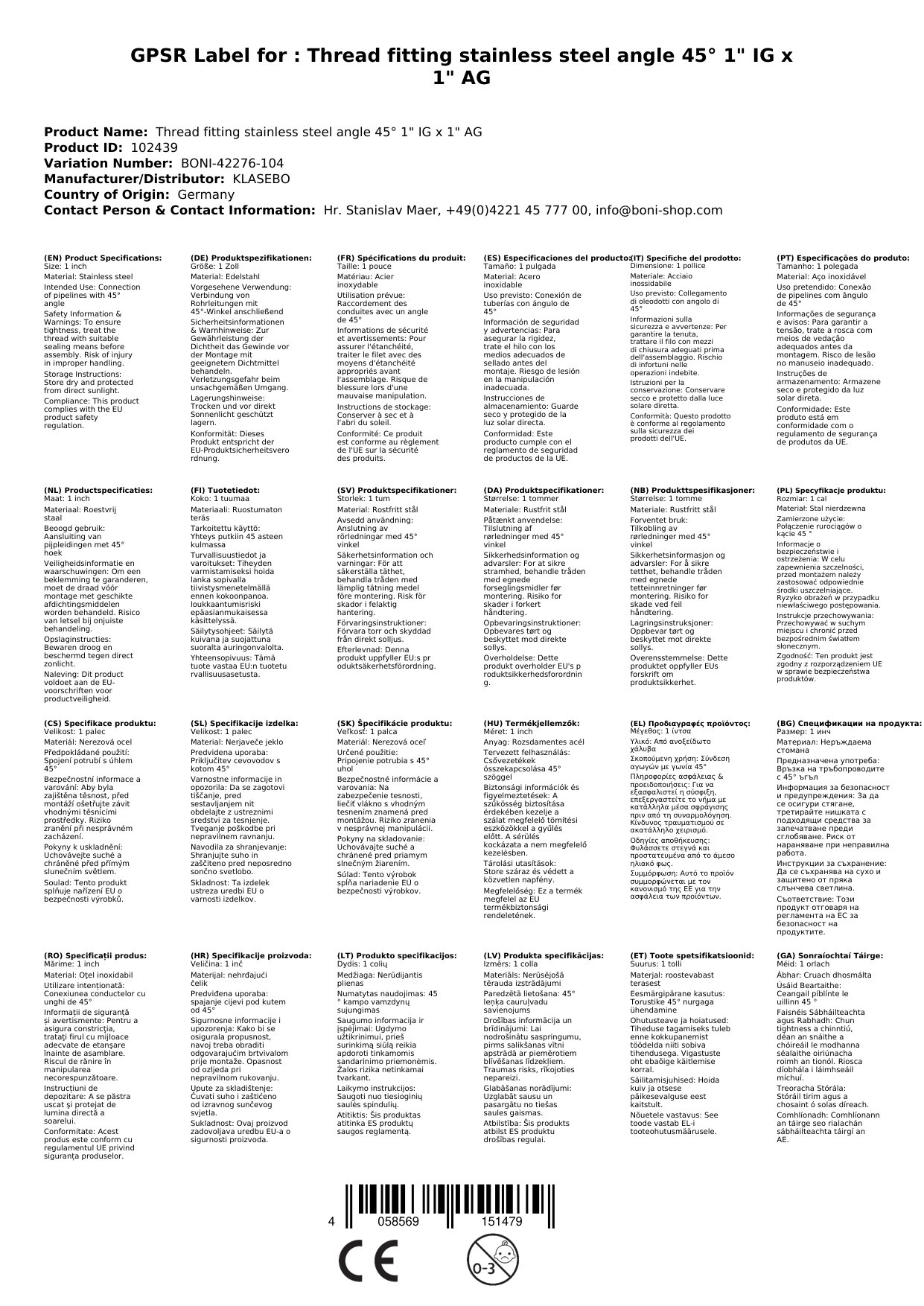 Edelstahl-Eckstück, 45-Grad-Rohranschluss, 1" Gewinde-Eckstück