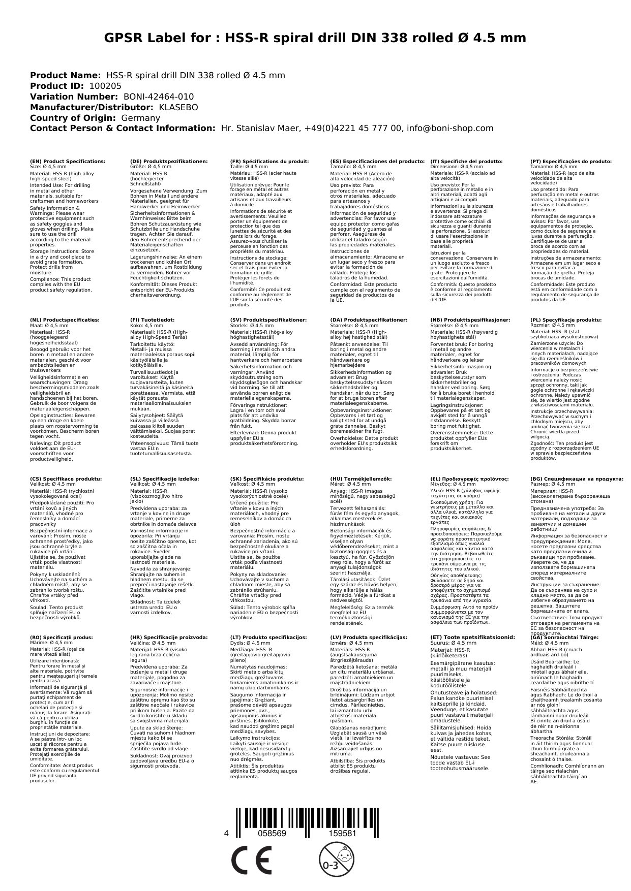 Spiralbohrer, HSS Bohrer, Metallbohrer 4,5 mm, DIN 338