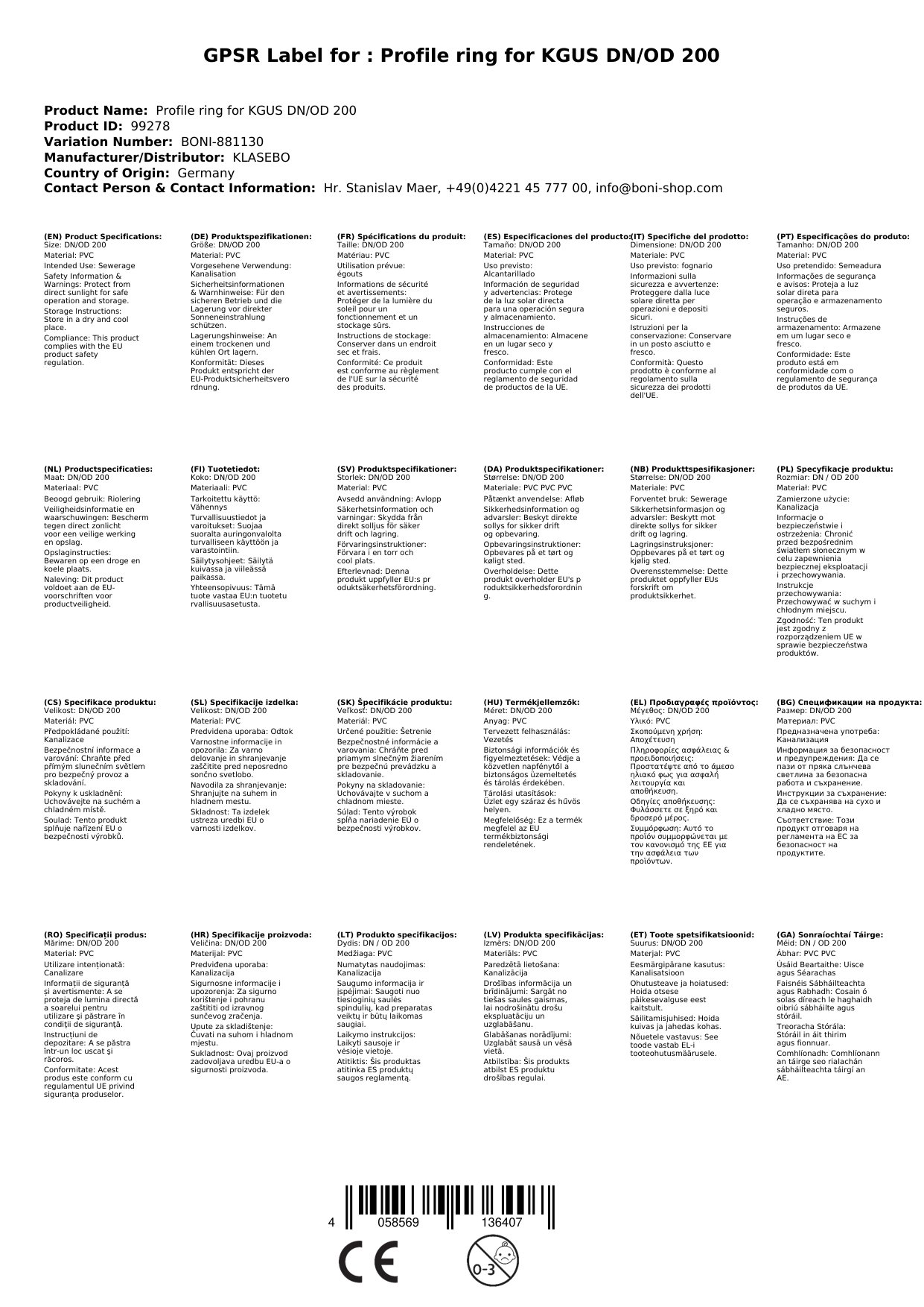 | Passend für | KGUS DN/OD 200 |