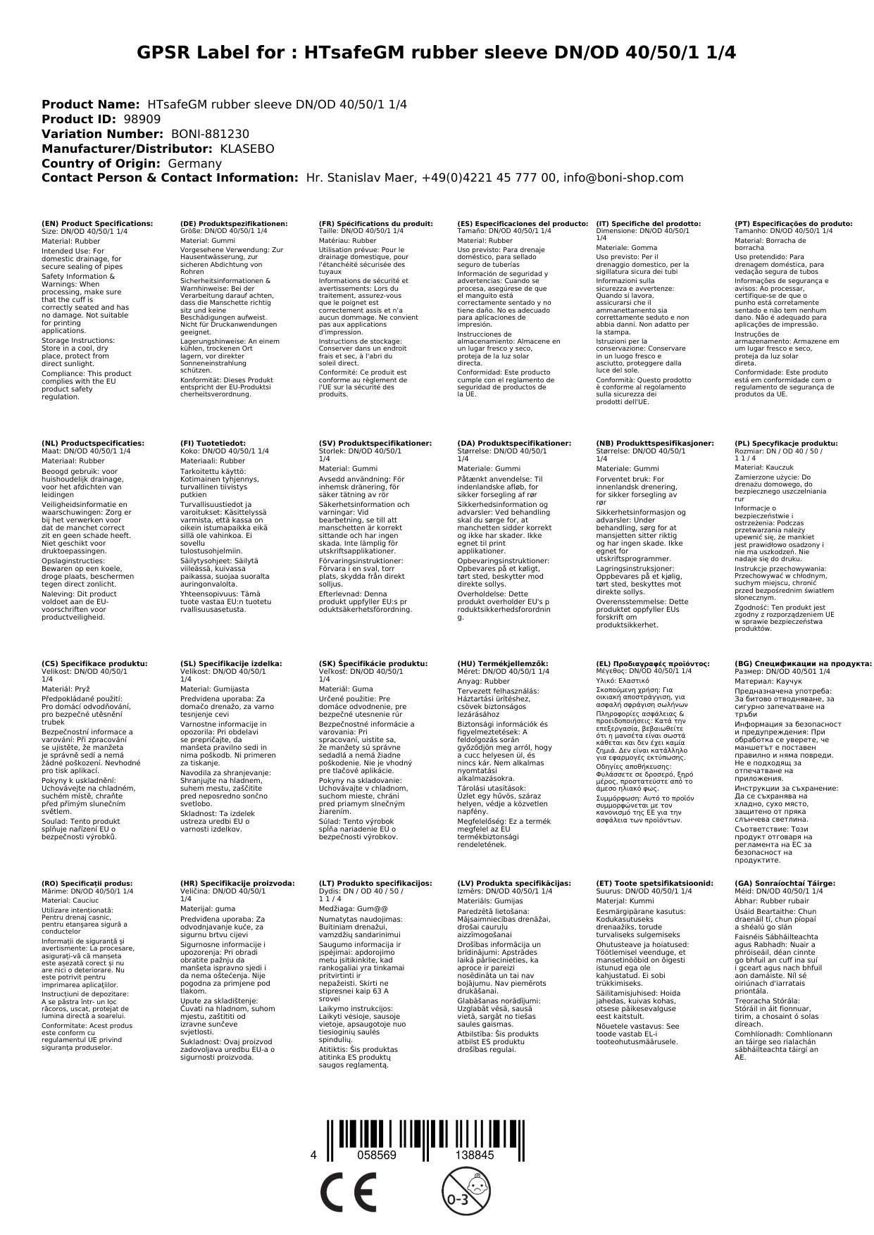 | Brand: | KLASEBO |