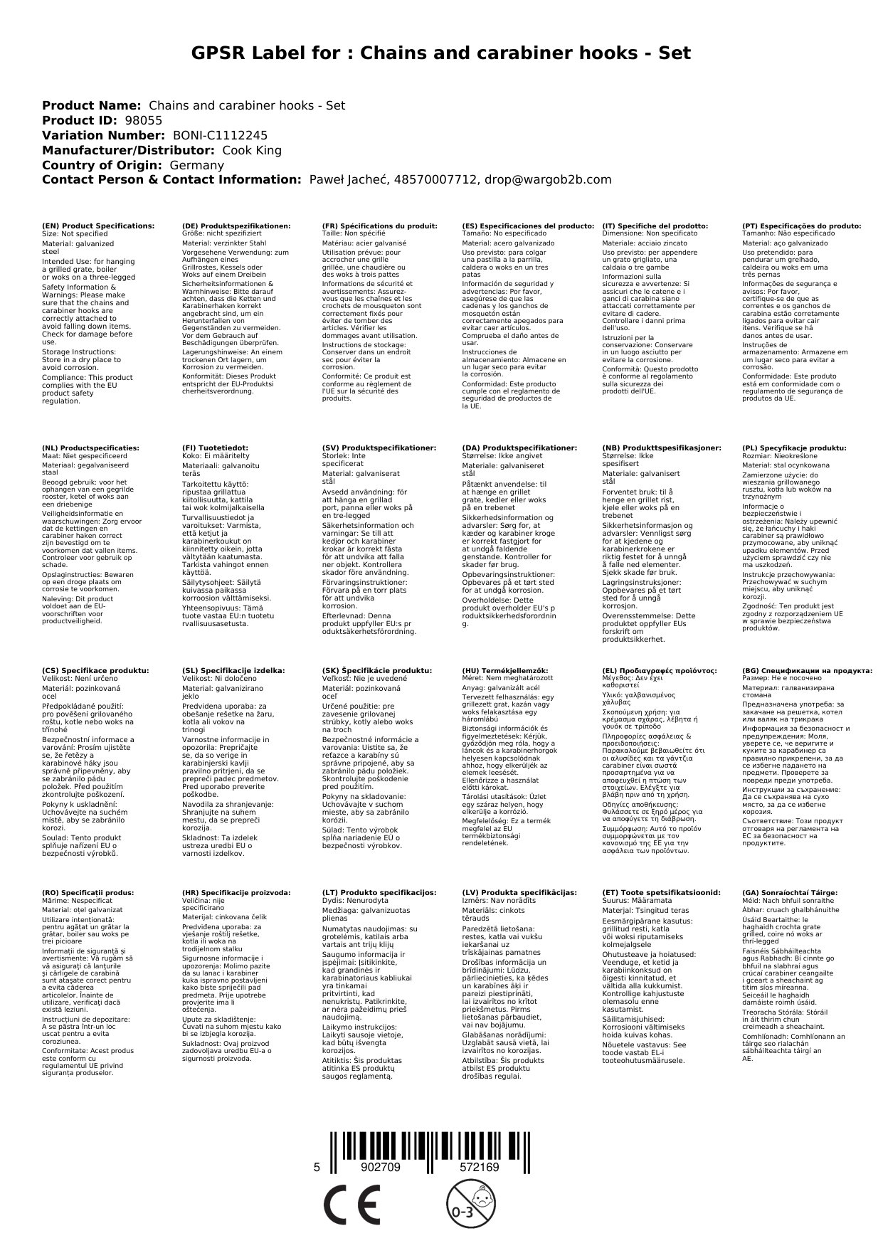 Das Set passt perfekt zu meinem Dreibein Grill. Die Ketten haben die ideale Länge und die Karabinerhaken sind sehr stabil. - Michael S.
