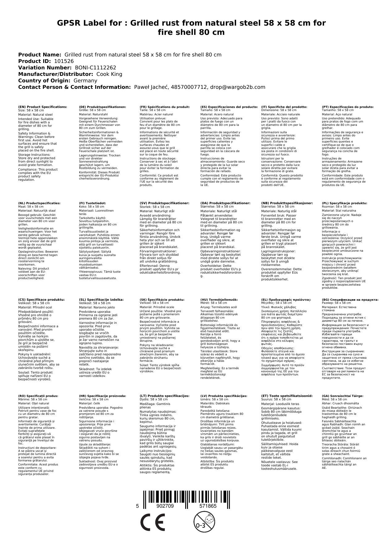 Der Grillrost ist speziell für Feuerschalen mit einem Durchmesser von 80 cm konzipiert. Die Verwendung auf anderen Grillgeräten wird nicht empfohlen.