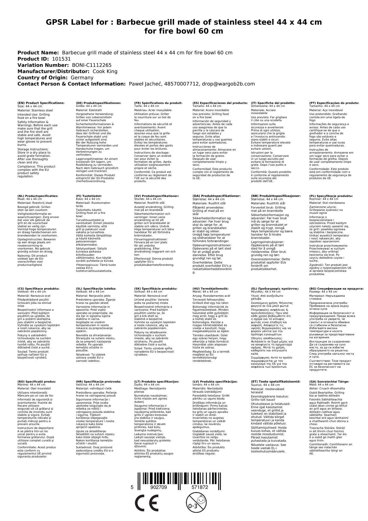 - Handgefertigt in Europa: Der Grillrost wurde in Europa gefertigt und überzeugt durch seine hohe Verarbeitungsqualität. Sie erhalten ein Produkt, das höchsten Ansprüchen genügt.