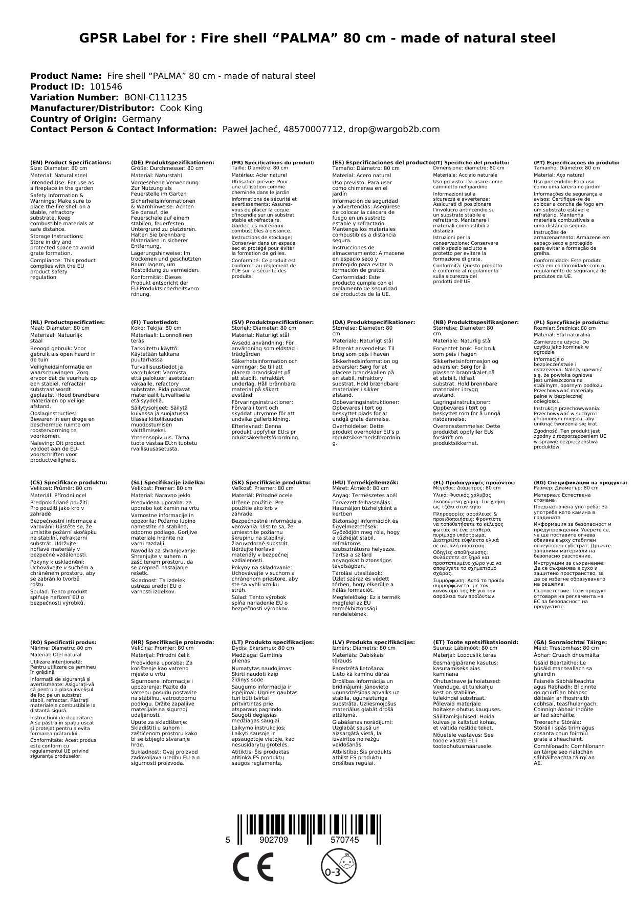 Passendes Zubehör wie Deckel, Funkenschutz und Grillrost sind separat bei Boni-Shop erhältlich.