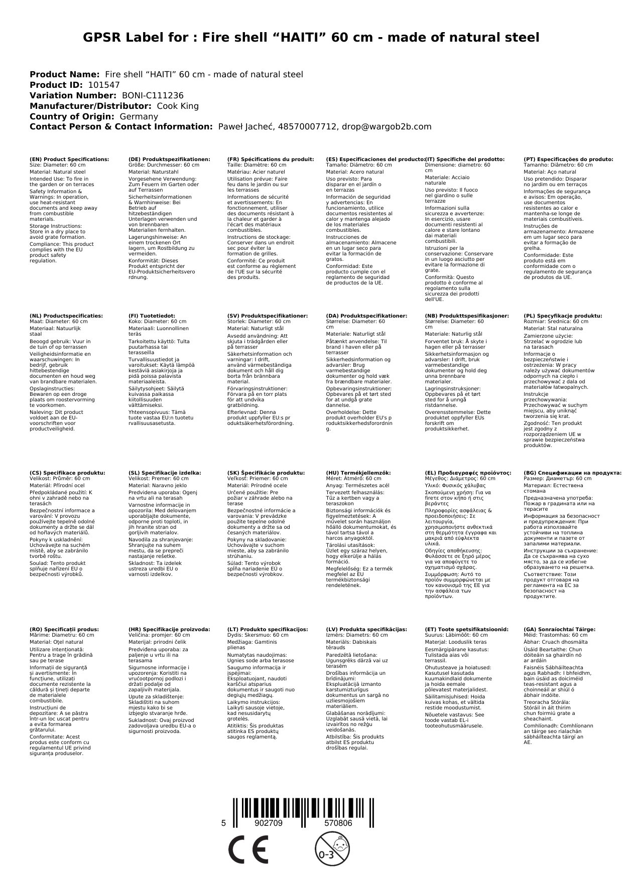 Stellen Sie eine Frage, um mehr über das Produkt zu erfahrenFeuerschale „HAITI“ 60 cm aus Naturstahl