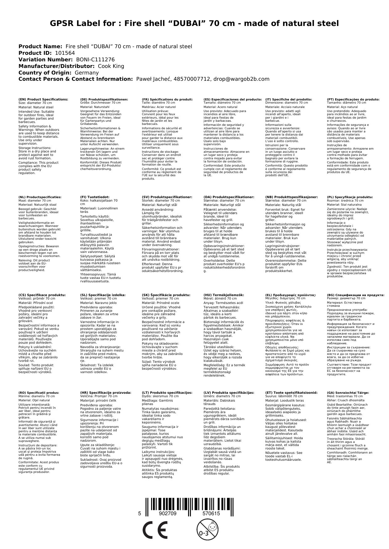 Stellen Sie eine Frage, um mehr über das Produkt zu erfahrenFeuerschale „DUBAI“ 70 cm