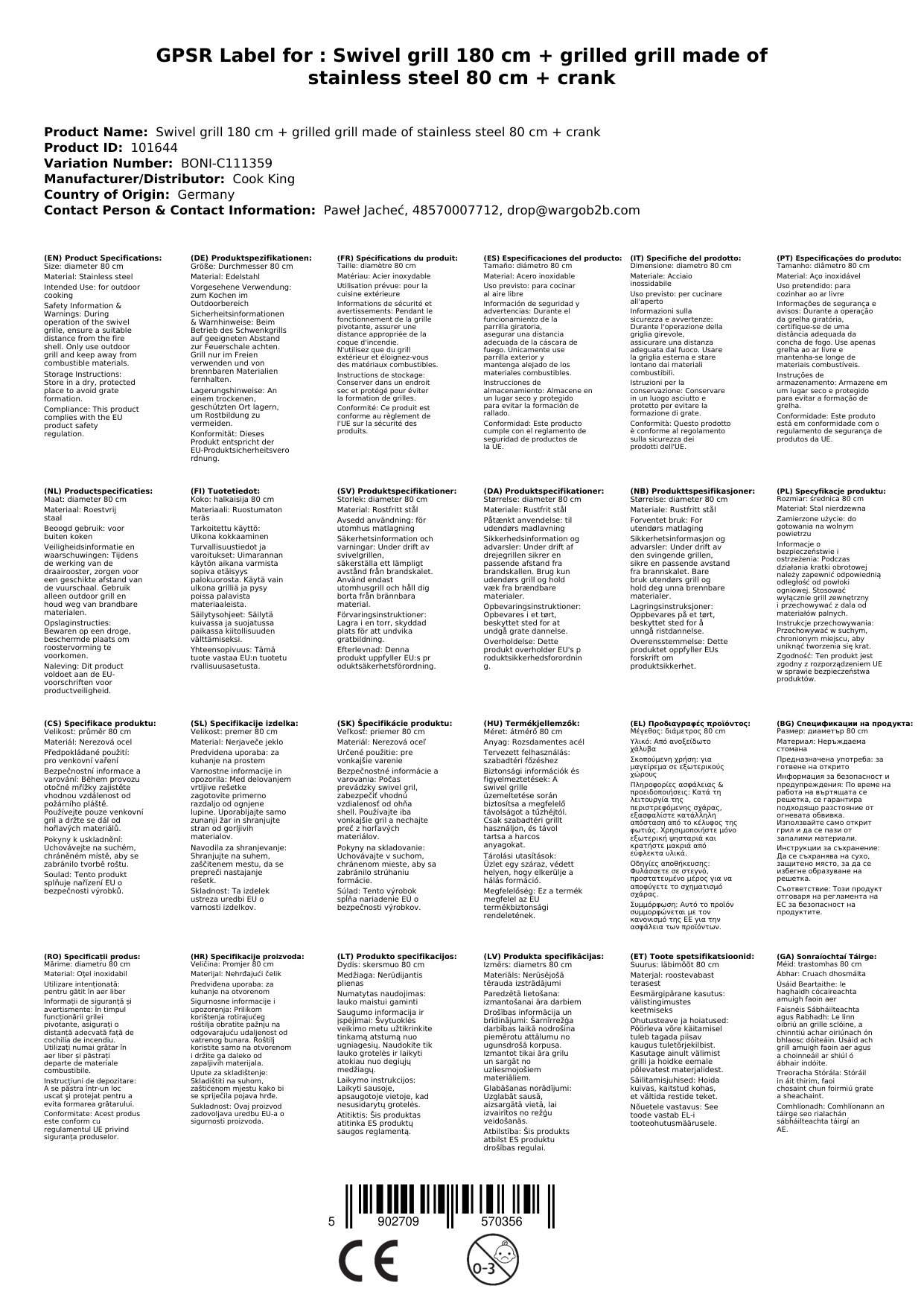 | Grillrost Durchmesser: | 80 cm |