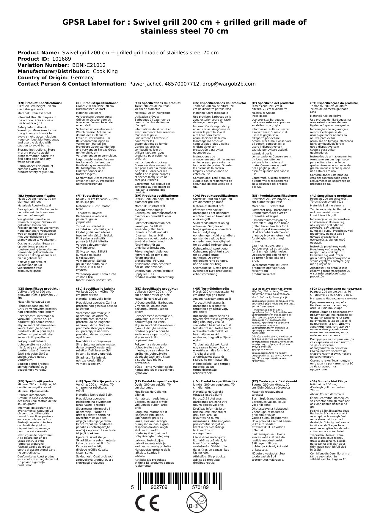 Stellen Sie eine Frage, um mehr über das Produkt zu erfahrenSchwenkgrill 200 cm - mit Grillrost aus Edelstahl 70 cm