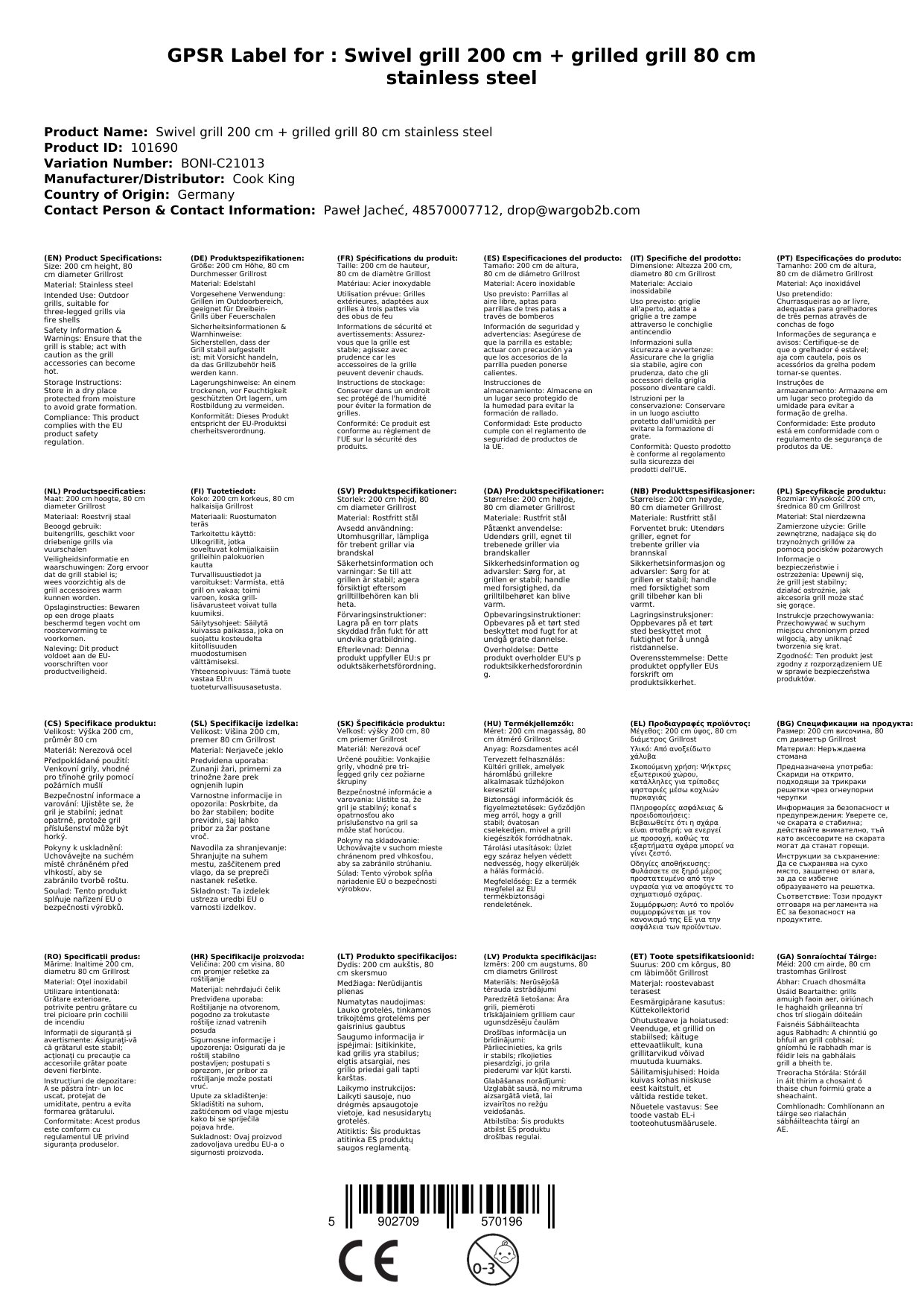 - Robustes Dreibein: Das pulverbeschichtete Dreibein mit einer Höhe von 200 cm ist stabil und widerstandsfähig. Sie können den Grill auch auf unebenem Untergrund sicher aufstellen.