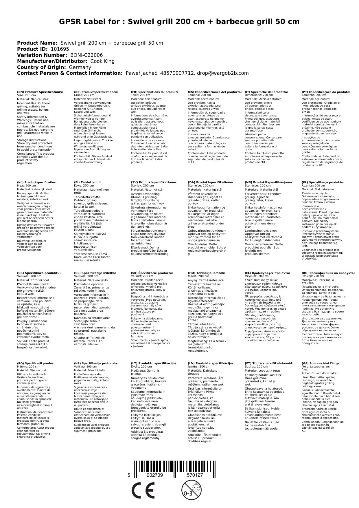 | Gewicht des Grillrosts | ca. 2,5 kg |