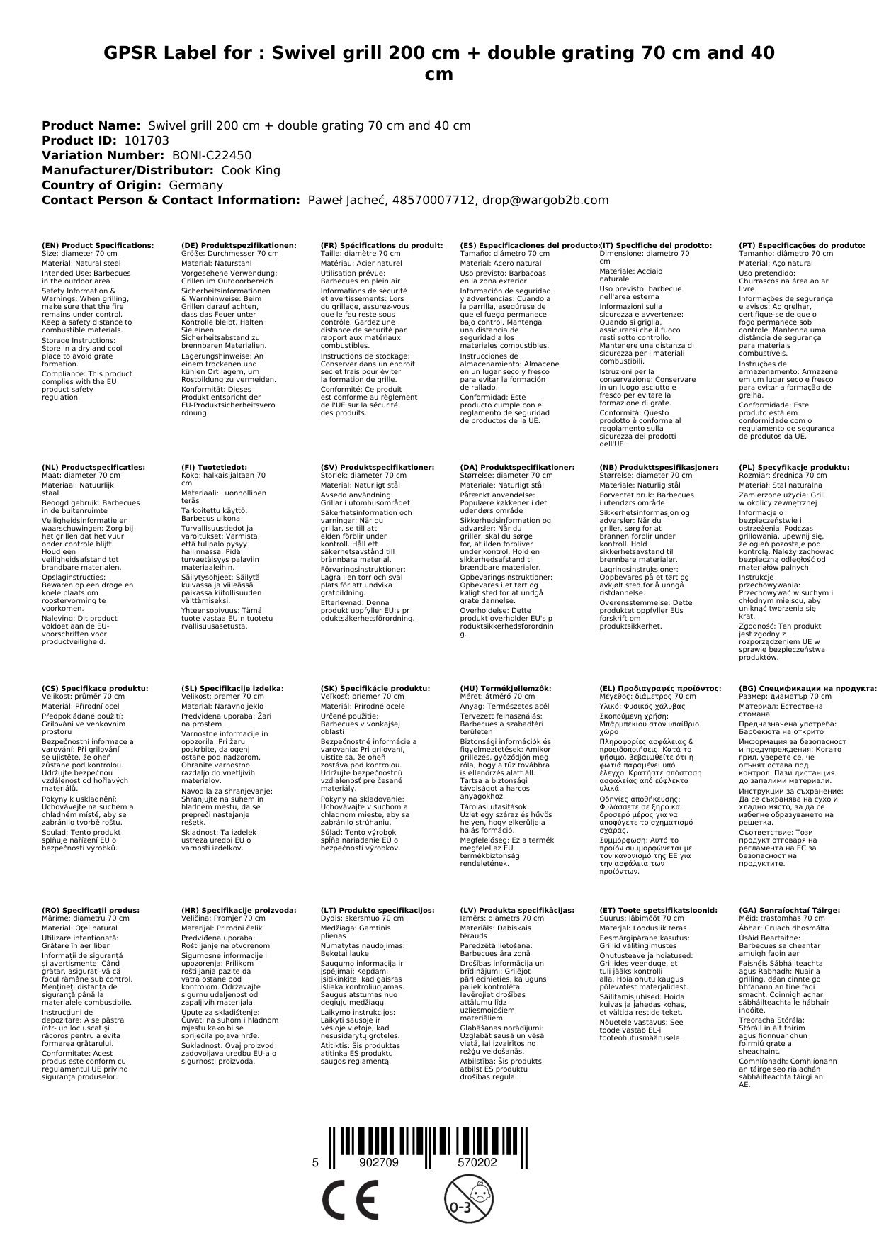 | Durchmesser Grillrost (unten) | 70 cm |