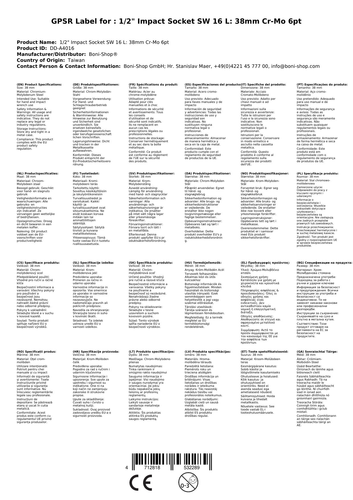 Die 1/2 Zoll Schlagschraubernuss von Boni zeichnet sich durch Robustheit aus. Gefertigt aus Chrom-Molybdän-Stahl (Cr-Mo) und mit 16mm Schlüsselweite, hält sie hohen Belastungen stand. Die Länge von 38mm ermöglicht Einsätze in schwer zugänglichen Bereichen. Verlasse dich auf lange Lebensdauer und Leistung.