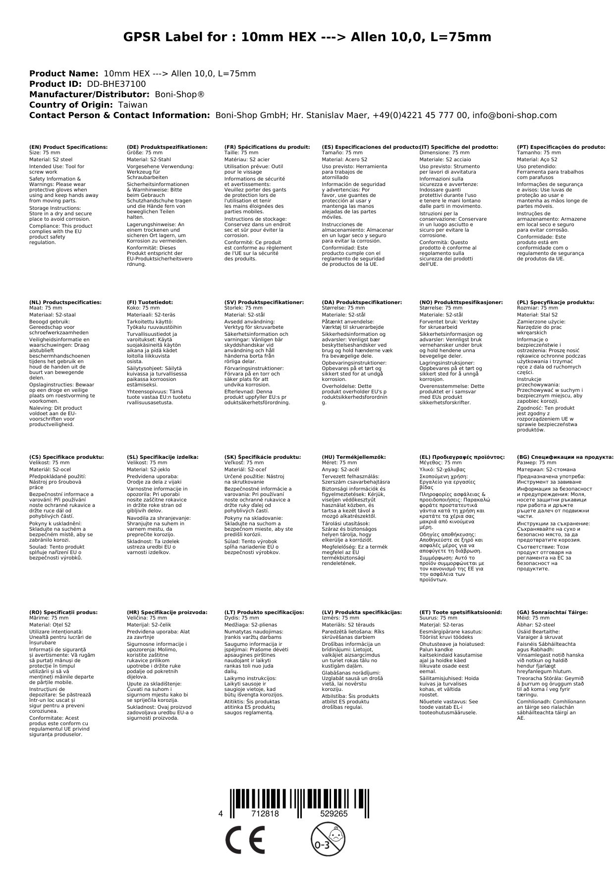 Unser Innensechskant bietet Dir zuverlässige Leistung für verschiedenste Anwendungen. Mit einer Größe von 10mm und einer Länge von 75mm ist er ideal für schwer zugängliche Stellen. Warum das für Dich wichtig ist: Du erhältst ein robustes Werkzeug, das Dir präzises Arbeiten ermöglicht.
