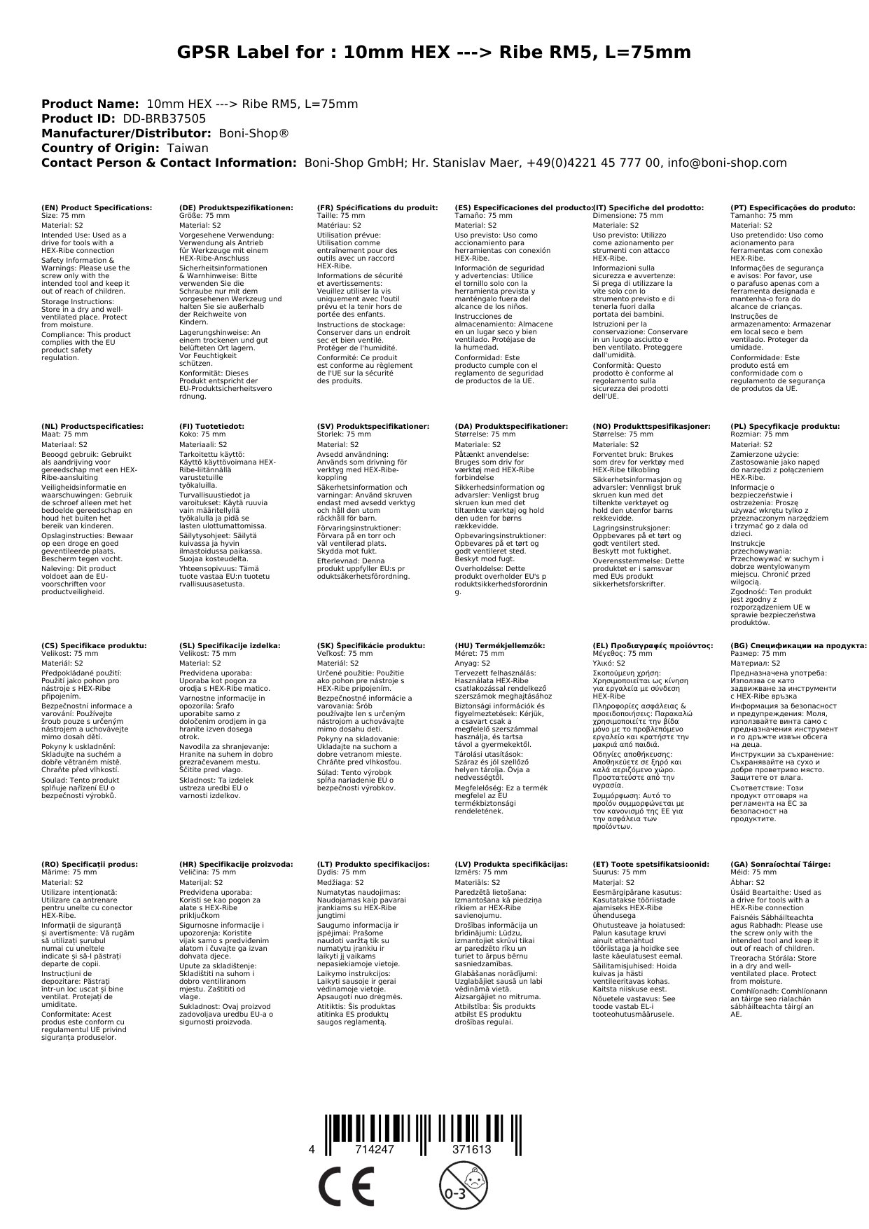 Unser Ribe Bit bietet zuverlässige Leistung für Ihre Schraubarbeiten. Mit der präzisen RM5 Größe und der robusten S2 Stahlkonstruktion hält es hohen Belastungen stand. Dank der 10mm Hex Aufnahme passt es in gängige Werkzeuge. Warum das für Sie wichtig ist: Sie können sich auf ein langlebiges Bit verlassen, das Ihnen präzise Ergebnisse liefert.