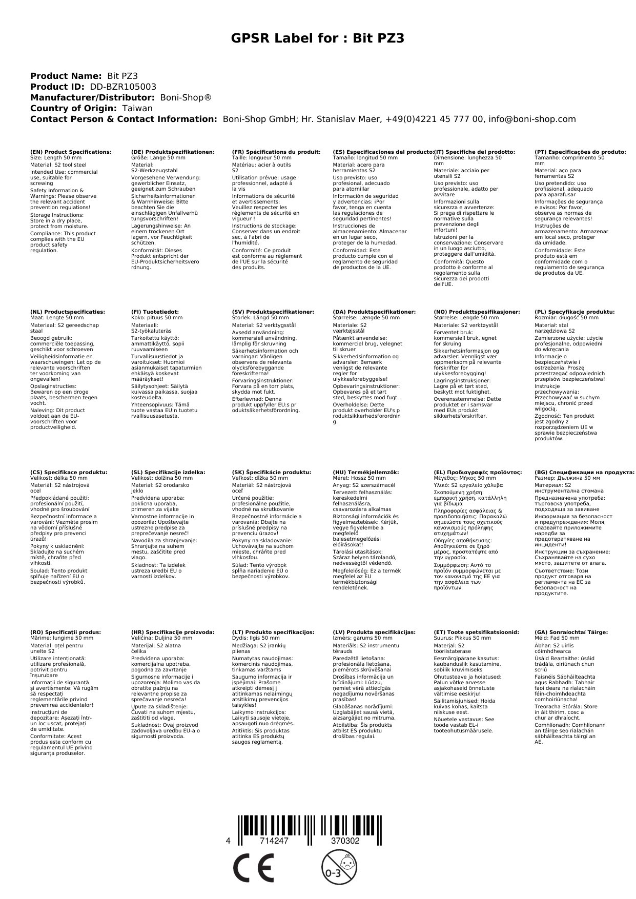 Unser PZ3 Bit bietet Ihnen zuverlässigen Halt und hohe Präzision. Hergestellt aus robustem S2-Stahl, hält es auch den höchsten Belastungen stand. Die Länge von 50mm ermöglicht Ihnen das Arbeiten auch an schwer zugänglichen Stellen. Warum das für Sie wichtig ist: Sie können sich auf ein langlebiges Werkzeug verlassen, das Ihnen die Arbeit erleichtert.