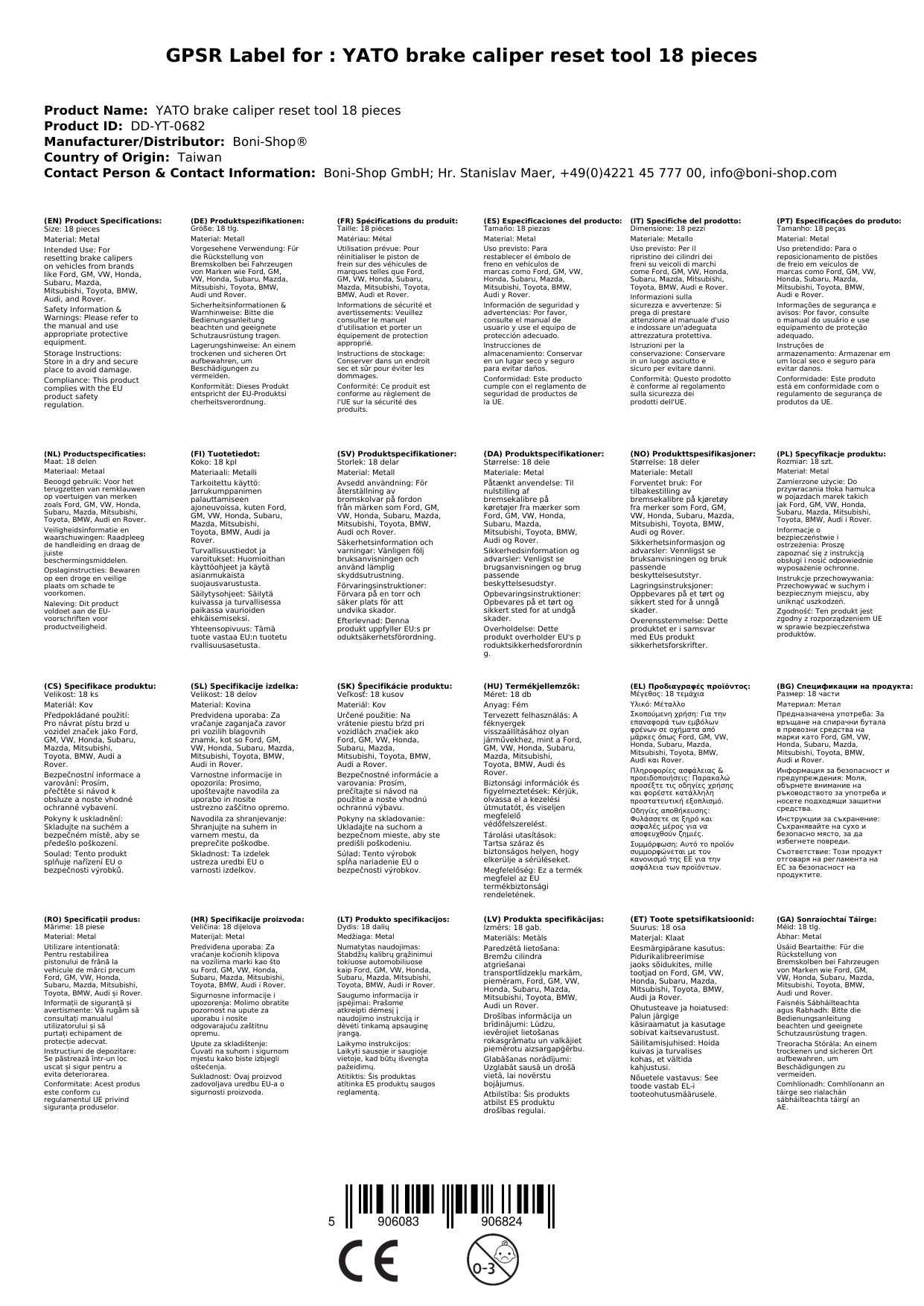 | Artikelnummer | YT-0682 |
