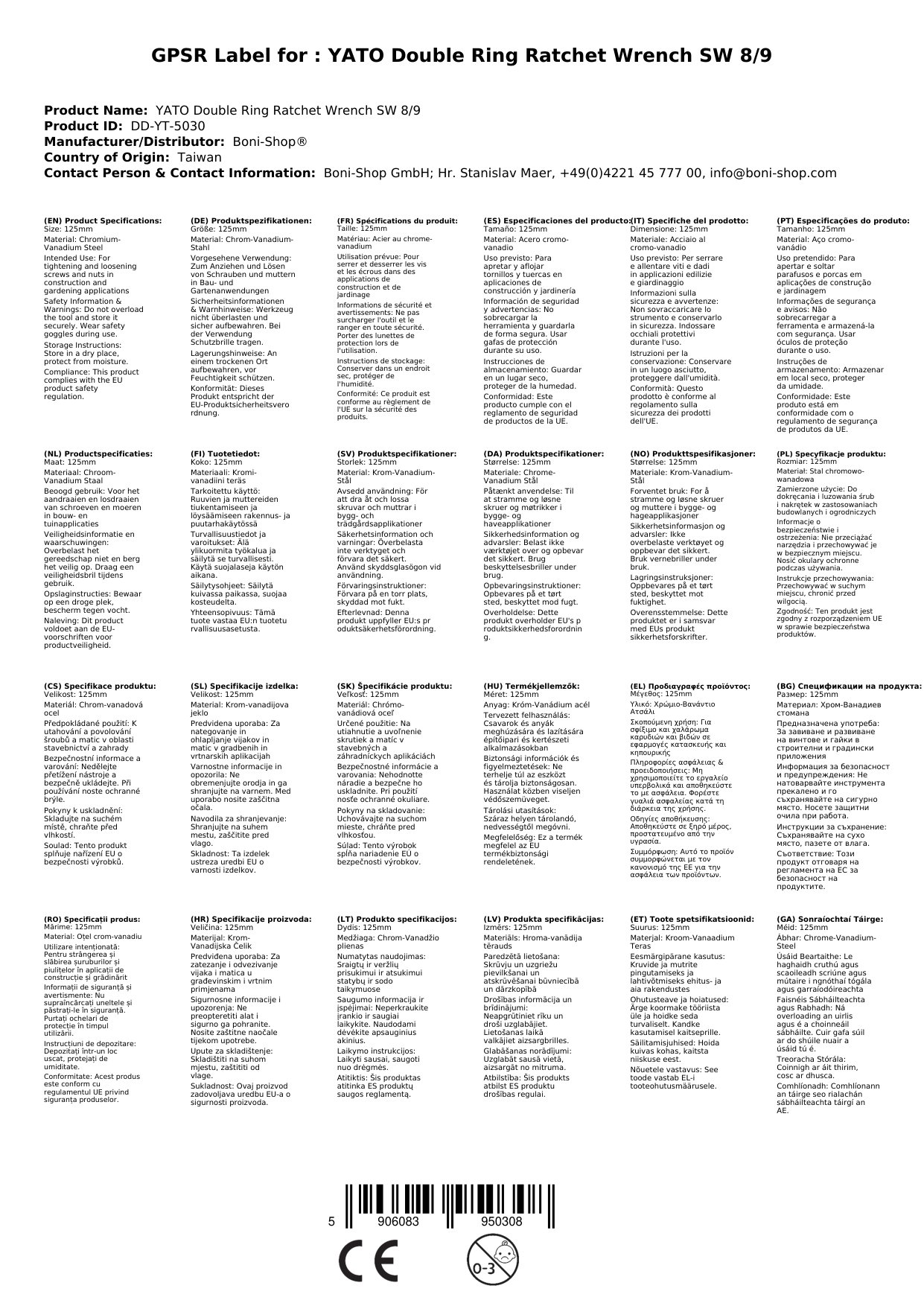 | SKU | BONI-DD-YT-5030 |