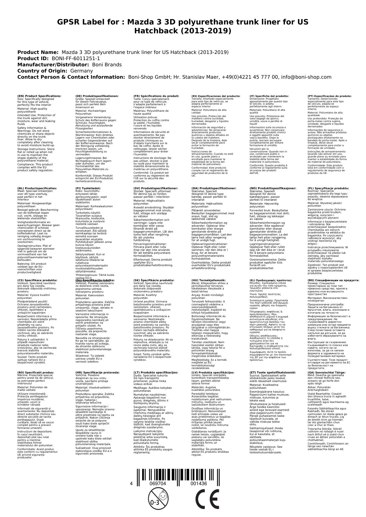 - Vielseitiger Einsatz: Ob Sie Einkäufe, Sportausrüstung, Gartenabfälle oder Haustiere transportieren – diese Kofferraumschutzmatte ist der ideale Begleiter. Sie schützt vor Kratzern, Schmutz und Flüssigkeiten und hält den Kofferraum Ihres Mazda 3 sauber und ordentlich.