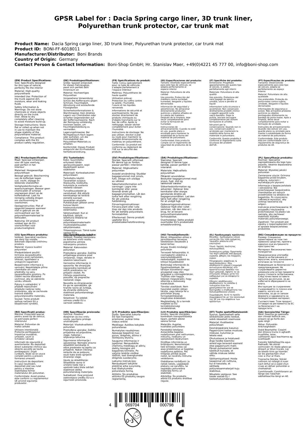 Diese spezielle Kofferraumwanne für den DACIA Spring ab Baujahr 2021 ist mehr als nur eine einfache Kofferraummatte. Sie wurde mittels präziser 3D-Scans gefertigt, um eine absolut passgenaue Form zu gewährleisten, die sich perfekt an die Konturen Ihres Kofferraums anpasst. Das verwendete Polyurethan-Material bietet hervorragenden Kofferraumschutz und ist gleichzeitig flexibel und geruchsneutral. So bleibt Ihr Fahrzeug innen sauber und ordentlich, egal was Sie transportieren.