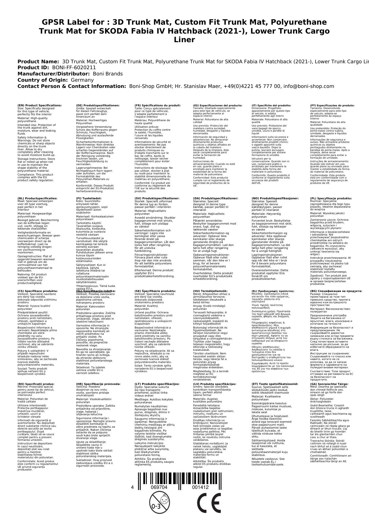 Stellen Sie eine Frage, um mehr über das Produkt zu erfahren3D Kofferraumwanne für SKODA Fabia IV (ab 2021) Hatchback, unterer Kofferraum, passgenau, Polyurethan