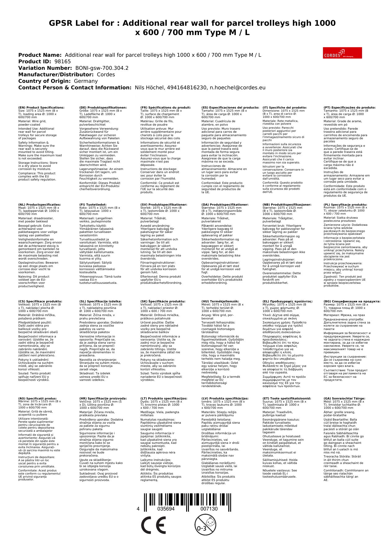 Die Zusatzrückwand ist aus robustem Drahtgitter gefertigt und hält auch schwerer Beladung stand. Achten Sie jedoch darauf, die maximale Tragfähigkeit Ihres Paketwagens nicht zu überschreiten.
