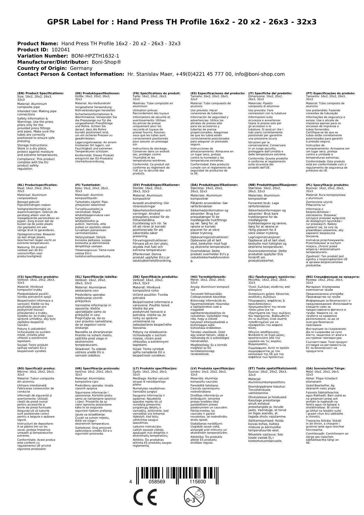 | Pressbackengrößen: | 16x2, 20x2, 26x3, 32x3 |