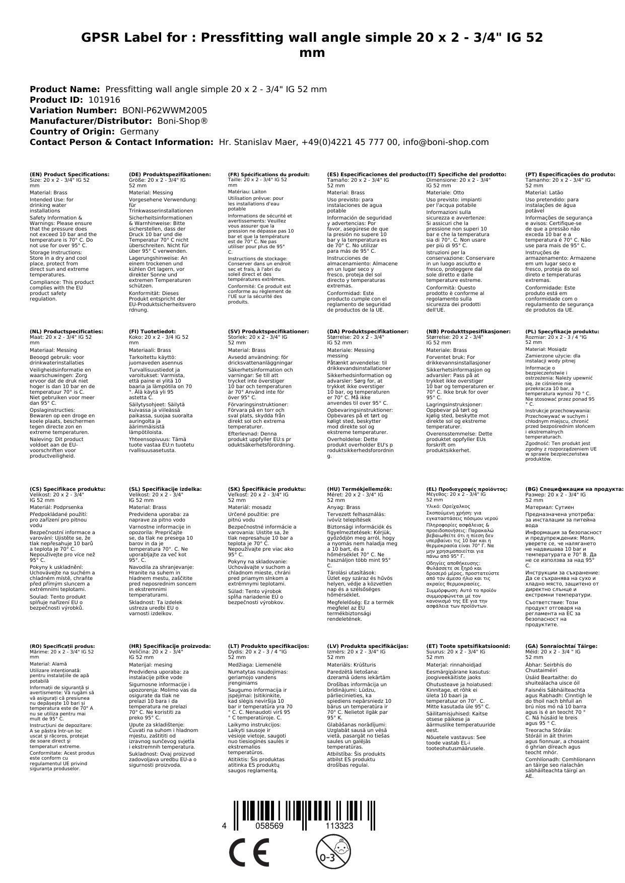 Stellen Sie eine Frage, um mehr über das Produkt zu erfahrenPressfitting Wandwinkel einfach 20 x 2 - 3/4" IG 52 mm