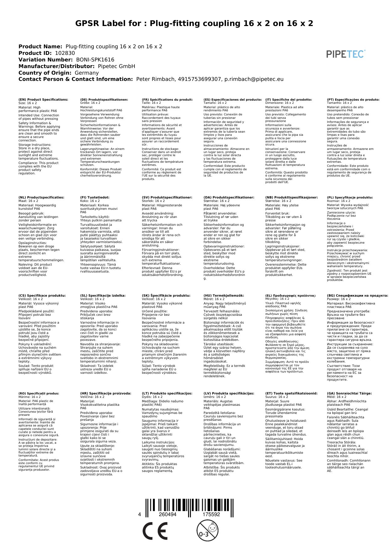| Dauerbelastbarkeit | 10 bar / 70°C / 50 Jahre |