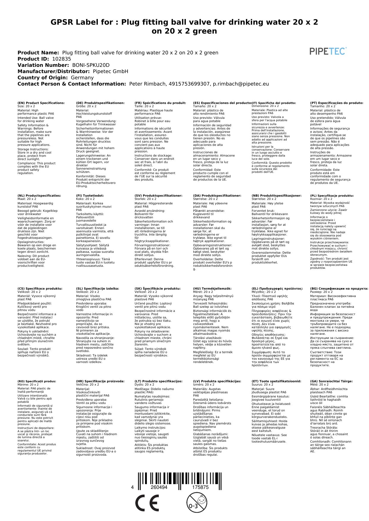 Stellen Sie eine Frage, um mehr über das Produkt zu erfahrenSteckfitting Kugelhahn für Trinkwasser - Einfache Installation, Maximale Sicherheit