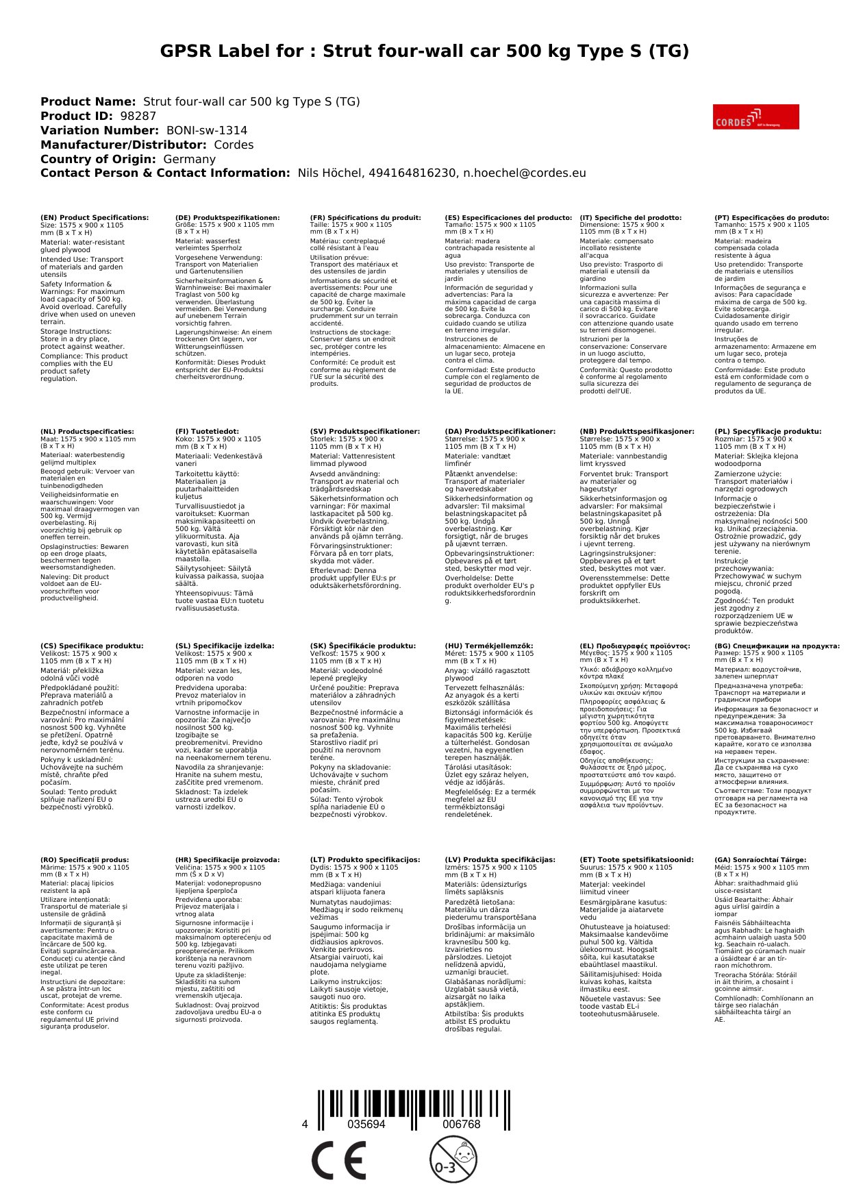 Stellen Sie eine Frage, um mehr über das Produkt zu erfahrenStreben Vierwandwagen 500 kg Typ S (TG)