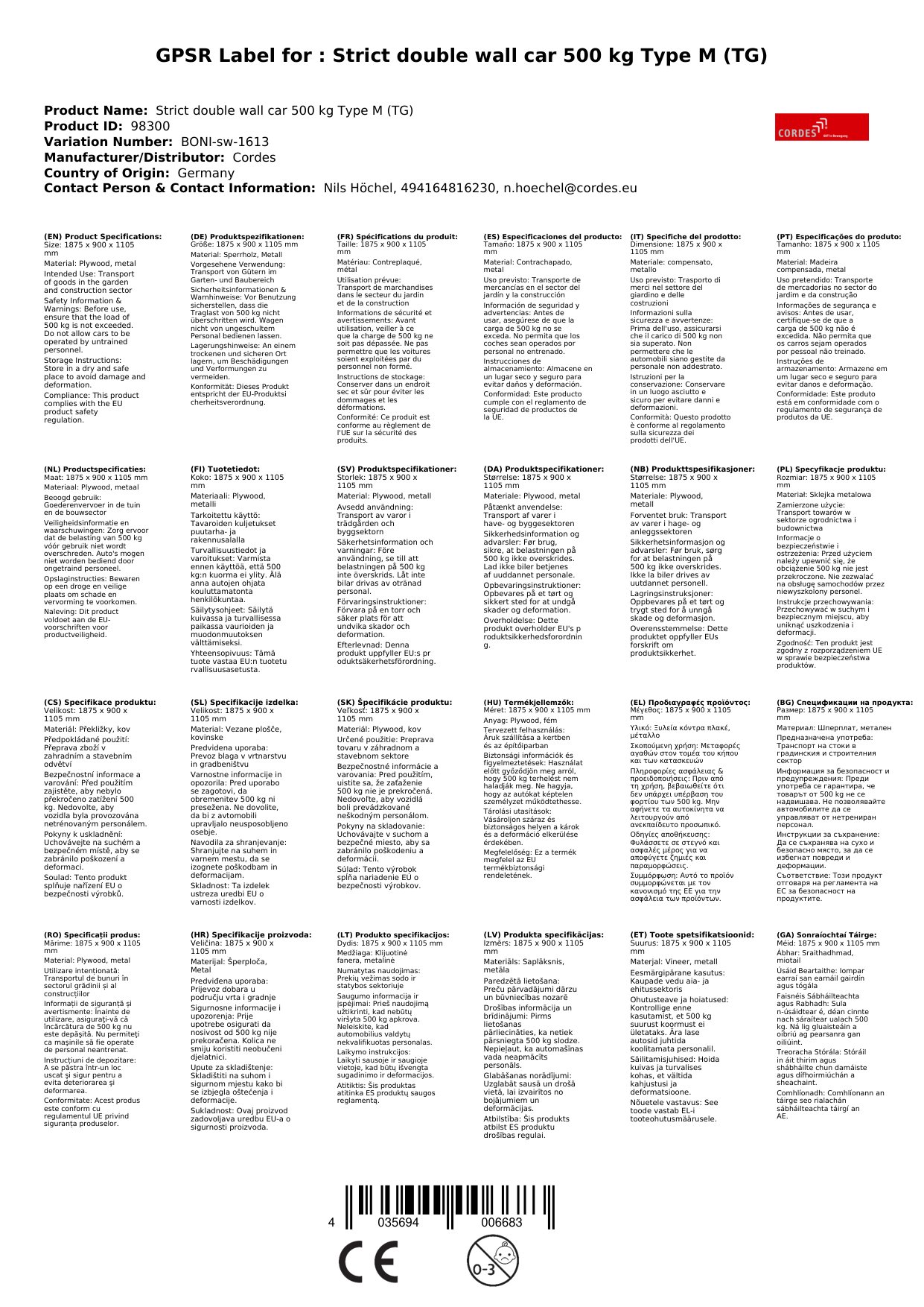 Stellen Sie eine Frage, um mehr über das Produkt zu erfahrenStreben Doppel-Stirnwandwagen 500 kg Typ M (TG)
