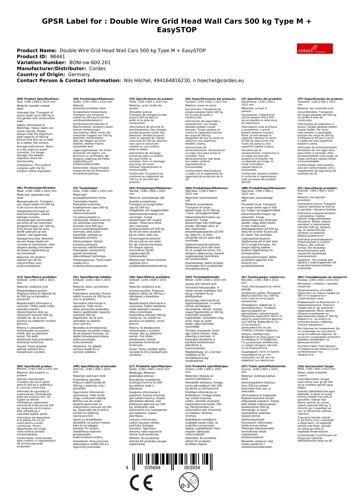 Der Wagen ist primär für den industriellen Einsatz konzipiert. Für den Transport von Lebensmitteln empfehlen wir, eine geeignete Zwischenlage zu verwenden.