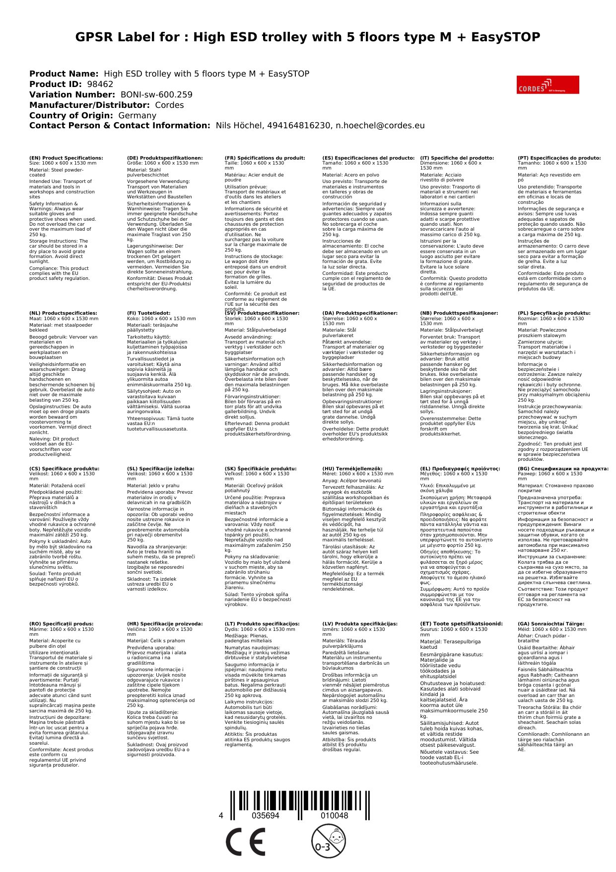 ESD Etagenwagen, Werkstattwagen ESD, hoher Wagen mit 5 Böden
