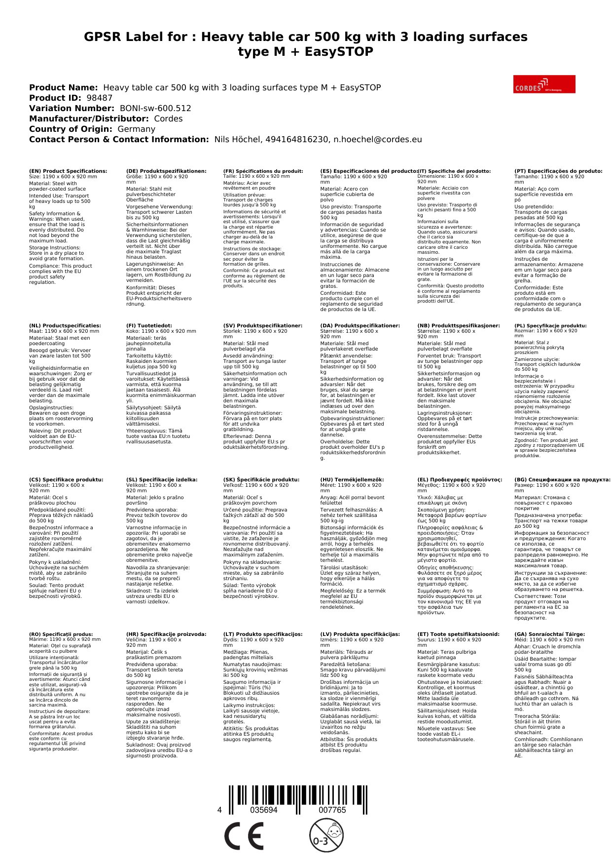 - Hohe Traglast: Mit einer Traglast von 500 kg können Sie schwere Gegenstände problemlos transportieren.